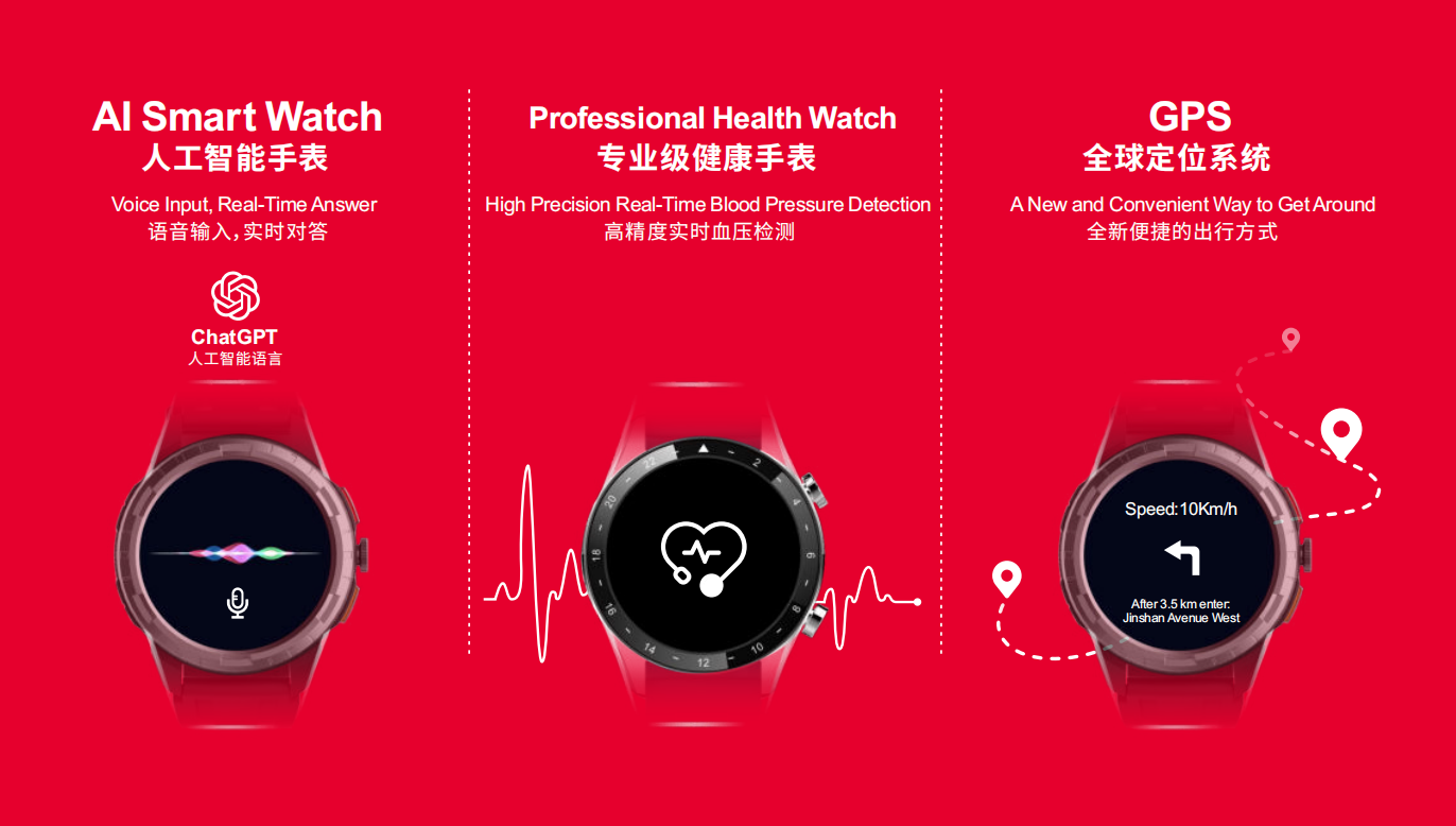 ChatGPT人工智能手表集成了人工智能技术,可以实现ChatGPT人工智能语言、语音输入、